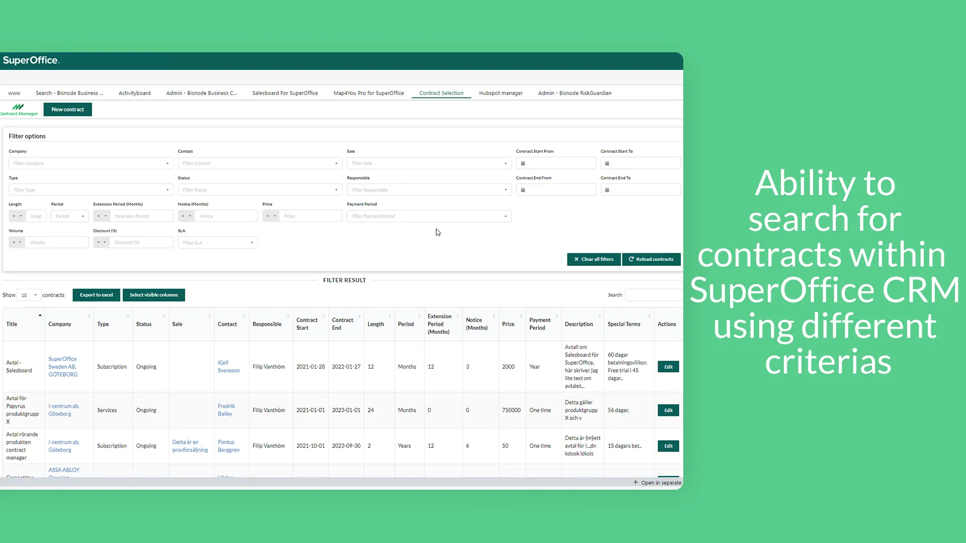 Managing contracts can be a hassle with piles of paperwork, approaching deadlines, and coordination challenges. Contract Manager simplifies contract organization and management within SuperOffice CRM, providing a centralized platform for tracking deadlines and streamlining communication.