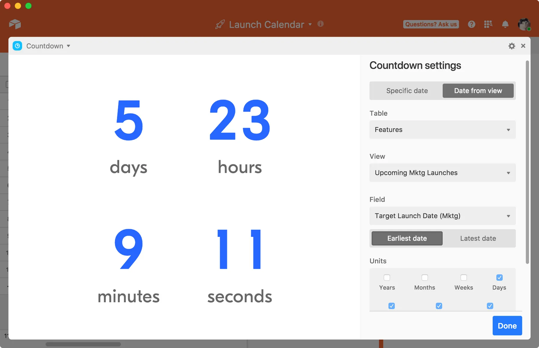 Count down to a deadline on Airtable with the Countdown app.