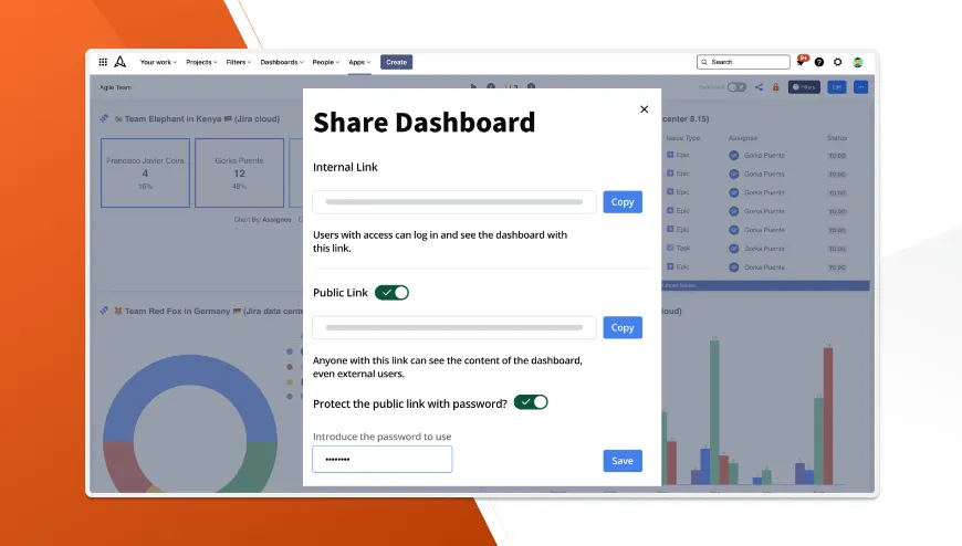 Use pre-defined dashboards templates and more than 75 gadgets to create dashboards for ITSM, Agile or DevOps teams. Share them with secure and unique links with external stakeholders without access to your instance