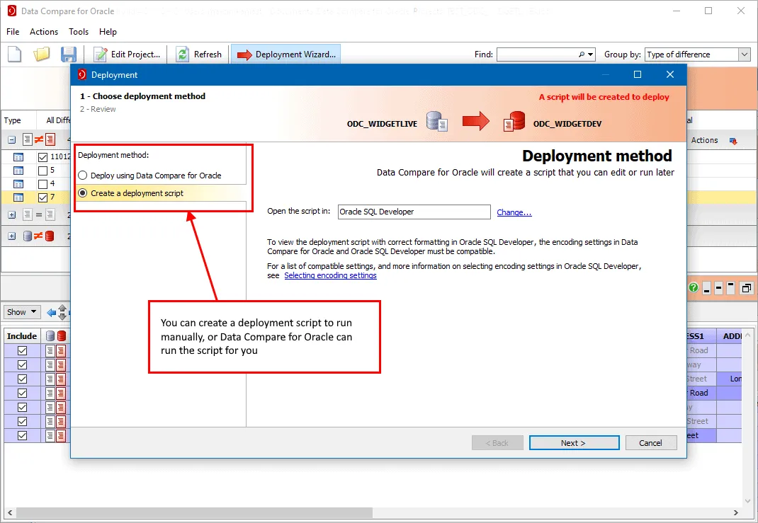Compare Oracle tables and deploy differences