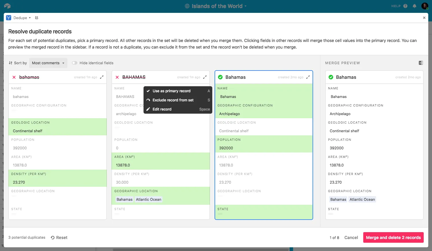 Identify and manage duplicate records in Airtable with the Dedupe app.