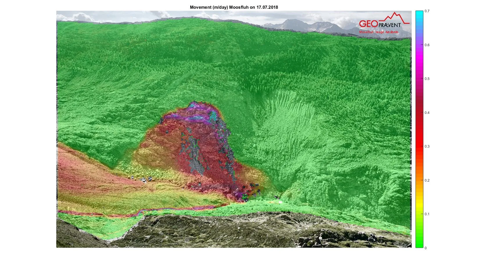 Monitoring of rock and ice with fully automated deformation analysis can detect displacements of a few centimetres quickly.