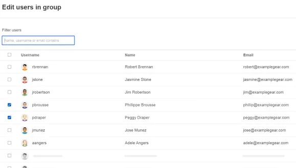 - Search for users, add teammates to your group, or remove them with a simple group management interface