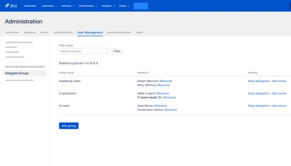 - Save admin time by empowering trusted team leads to manage their own Jira user groups