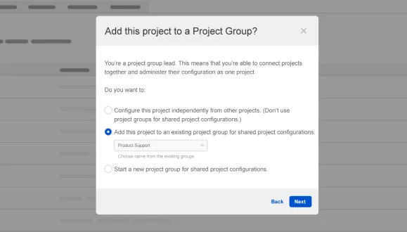 When several projects share the same settings, simply add them to a Project Group and any changes made to one project's settings will be automatically applied to all projects in the group.