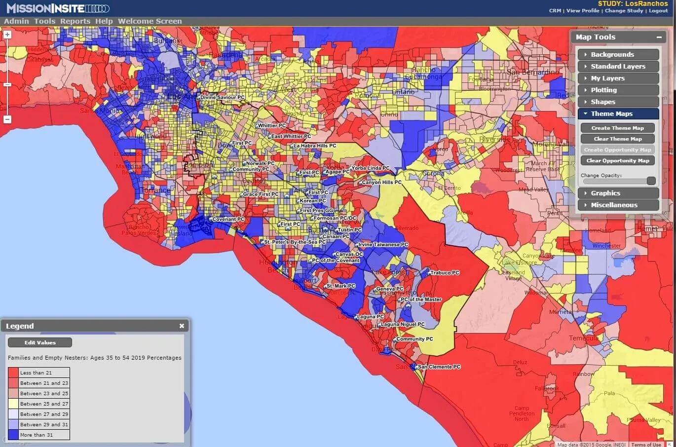 MissionInsite’s proprietary cloud-based technology platform is designed specifically for church, faith-based and nonprofit leaders. It bridges the gap between data and actionable information by answering the “where” and “what about” questions about your organization and community. MissionInsite is an easy-to-use, geo-demographic mapping interface built on Mapbox technology. There is no software or hardware for your organization to download or maintain additional licenses to purchase. No specialized training is required. It can be deployed to as many users within the organization as needed. MissionInsite answers “where” questions about your members, donors, users, locations, boundaries, housing developments, special programs and community at large. By visually presenting the locational relationships, questions are answered and decisions can be made – simply and easily. MissionInsite provides three distinct but interwoven perspectives. Each perspective enables your organizational leadership to better understand the information presented and discover the solutions.