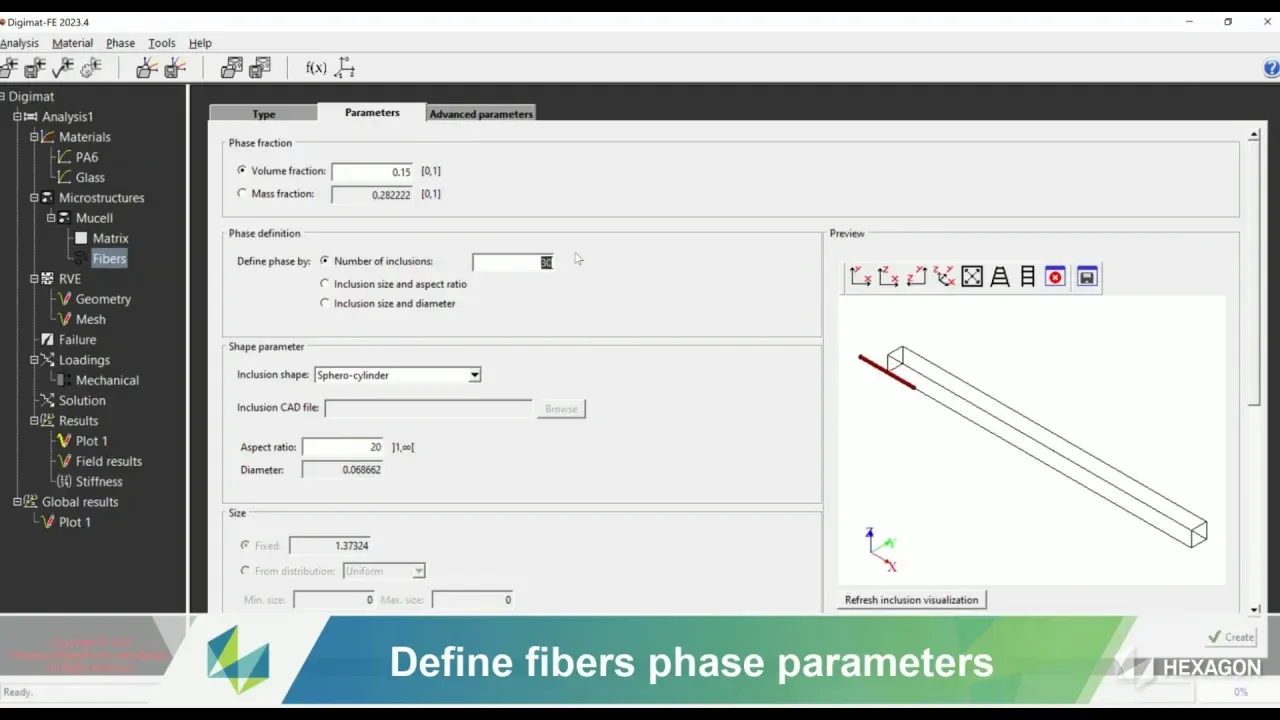 - Offers generic inclusions such as matrix, inclusion, void, continuous fiber, strand, and external CAD imports.