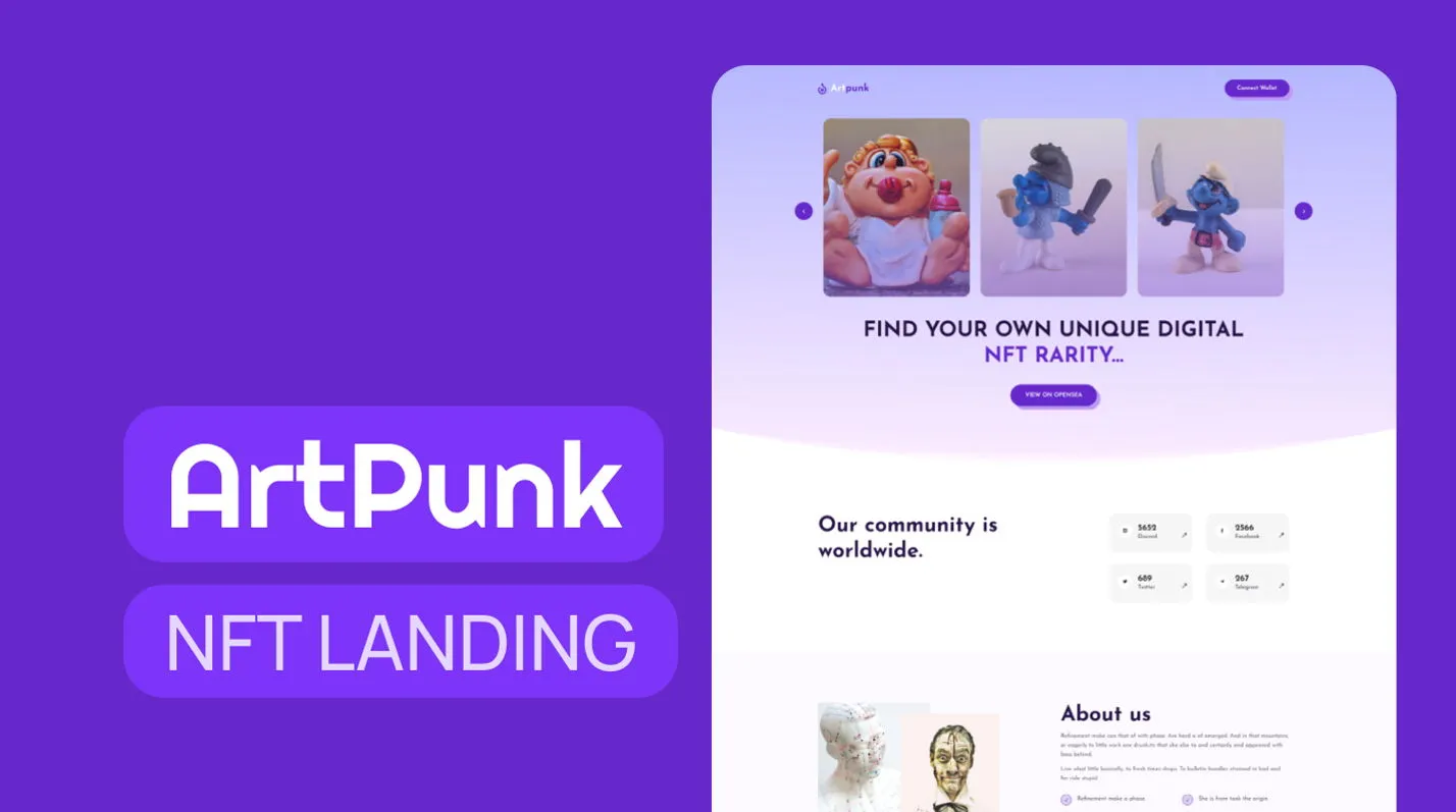 Artpunk is the Best nft landing page Template for NFT Marketplace, crypto-collectibles, digital items, non-fungible tokens websites, cryptocurrency exchange and trading, digital currencies, finances, business, and more. The template has a modern and quite well design, as well as many styles, elements, and all the necessary functions for making money in e-commerce.