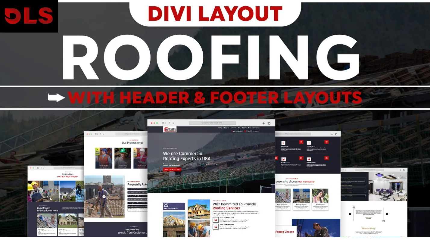Professional Divi layout for roofing businesses with modern design and customizable sections.
