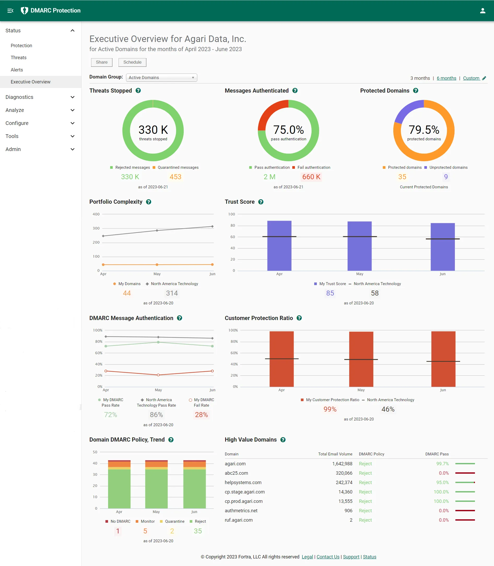 The Agari DMARC Protection solution is designed to support every step in your DMARC security journey: from initial configuration and authentication to active DMARC monitoring and analysis. Text