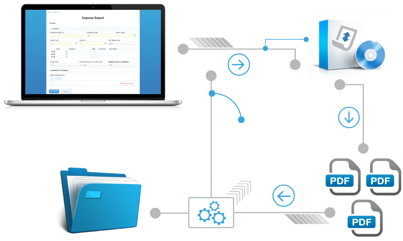 - Electronic forms, automatic report delivery, and output management Getting the right documents to the right people for approval means that your business processes can progress without bottlenecks. With electronic forms to capture vital information from clients, partners, and employees and integration with your key business systems, you can say goodbye to paper forms and manual data entry.