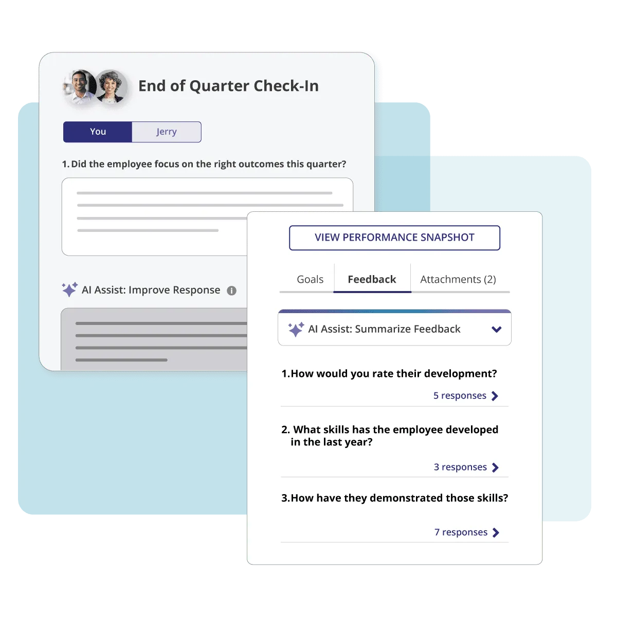 - Goal Alignment: Feedback is tied to individual and team objectives, ensuring alignment with company priorities.