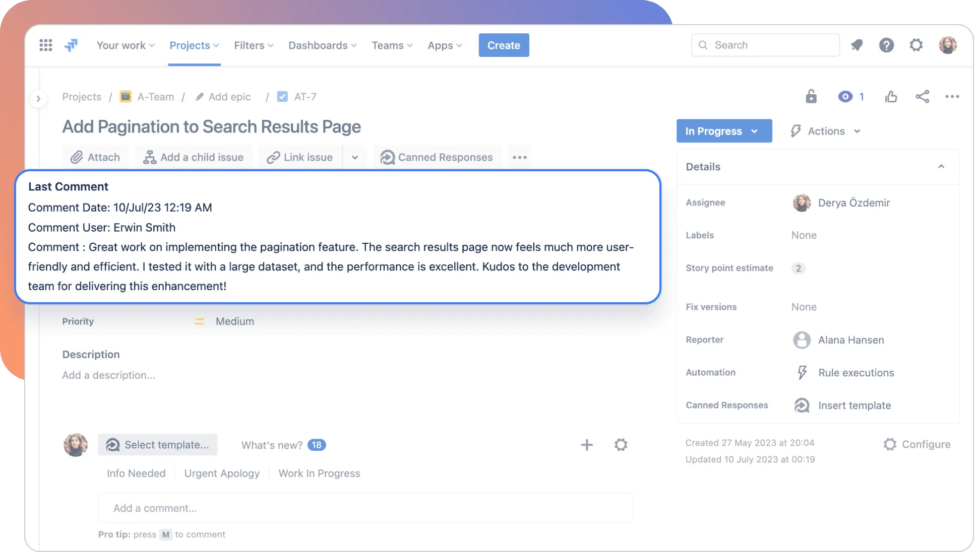 View comment data such as the first/last comment made, the user who made the comment and the time it was made directly in the issue navigator.