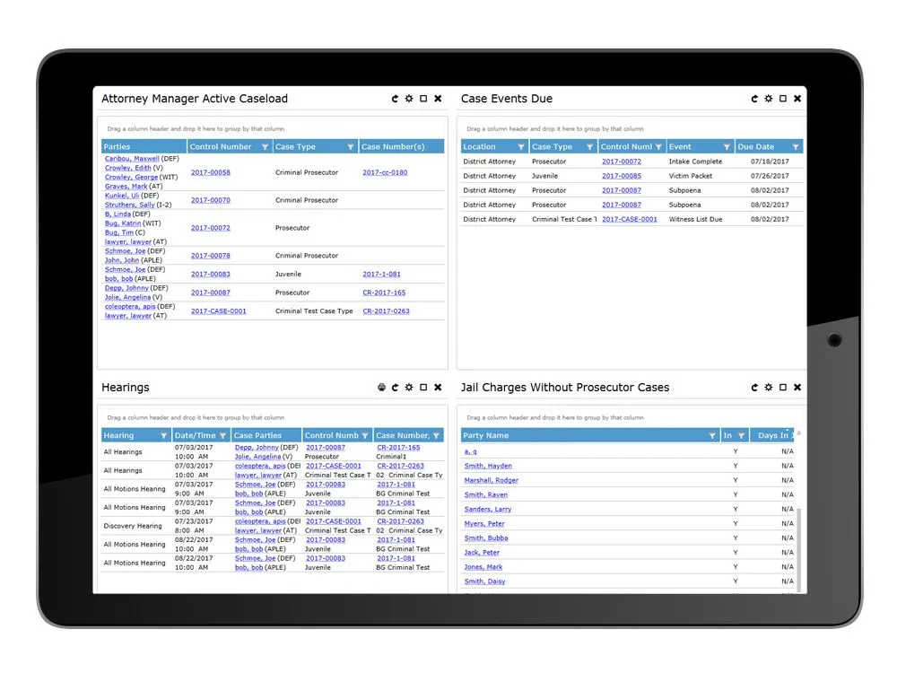 Comprehensive case management solution for prosecuting attorneys and public defenders.