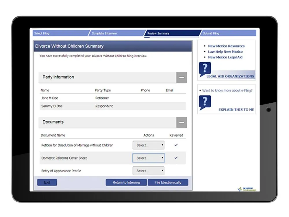 - Seamlessly integrates with Tyler's eFile & Serve platform, allowing for direct electronic submission of completed forms.
