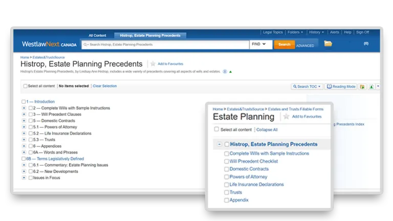 - **Histrop's Estate Planning Precedents: **Access a highly regarded, well-drafted, always current, and comprehensive collection of precedents in a fully searchable online format.