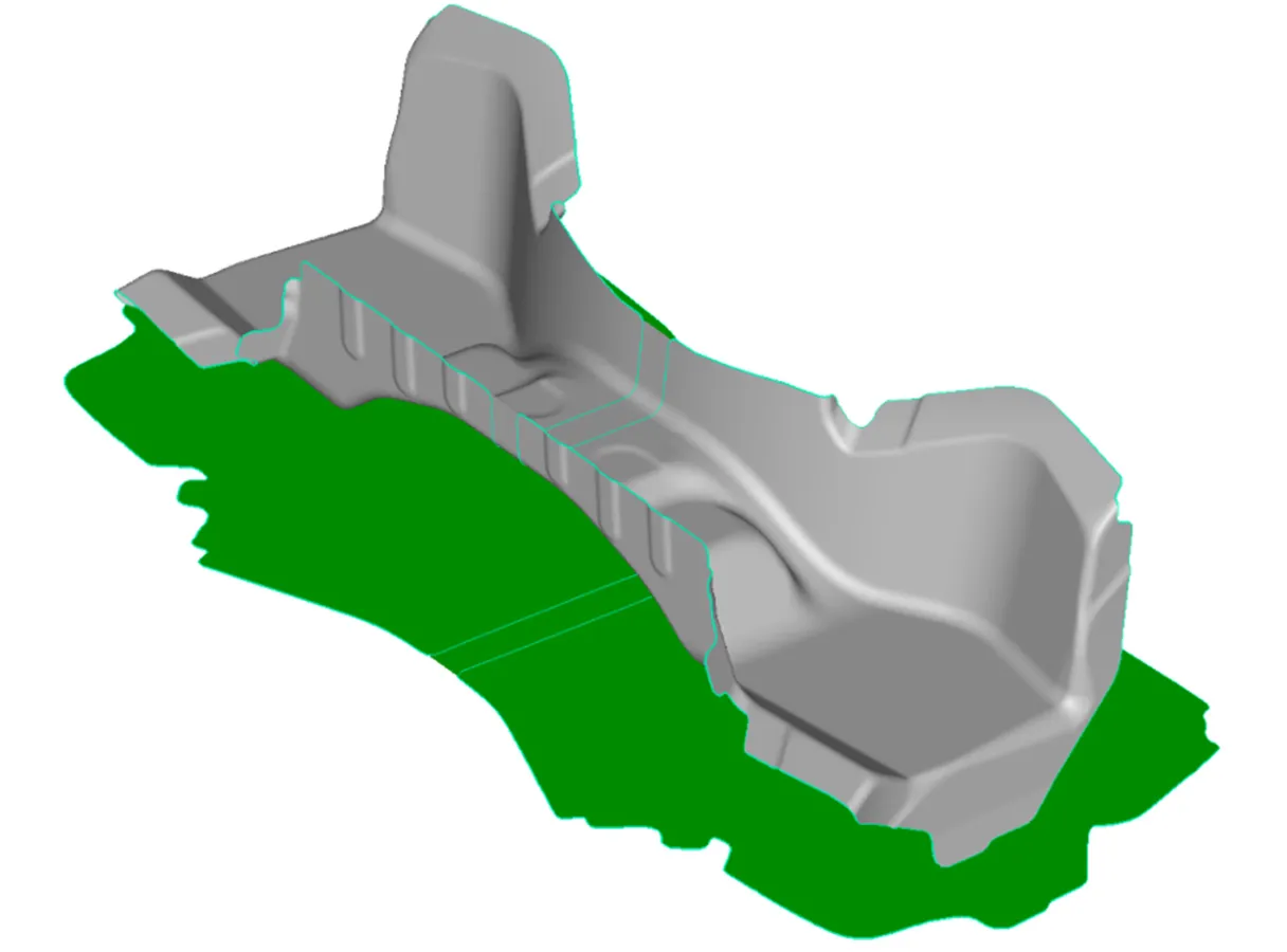 - Formability Analysis: FASTBLANK accurately identifies material thinning and gathering conditions, providing critical insights into potential formability issues such as splits or wrinkles, thereby allowing for early design modifications.