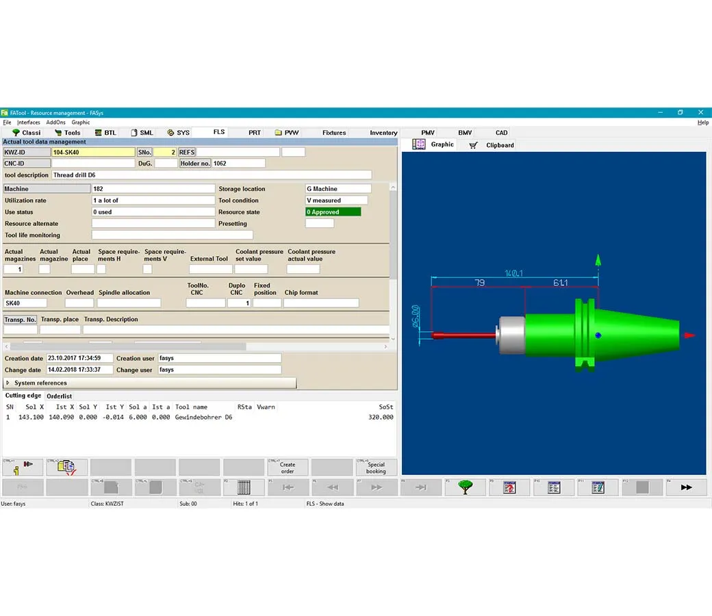 - Tool Administration: Management of all physically present tools, including cutting data and tool life tracking, to optimize tool usage and maintenance.