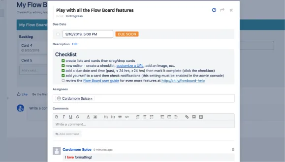 Add due date, assignees, and comments to cards