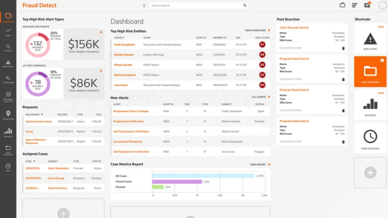 - **Detect fraud behavior patterns with confidence: **Get detailed analyses to predict and detect complex schemes. You'll receive risk-scoring, stack-ranked lists of all program providers and participants based on their risk for fraud.