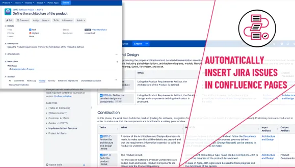 Automate the Jira and Confluence associations into your templates easily by adding programmed tags which automates document-to-issue traceability. This allows you to be more efficient over all your projects.