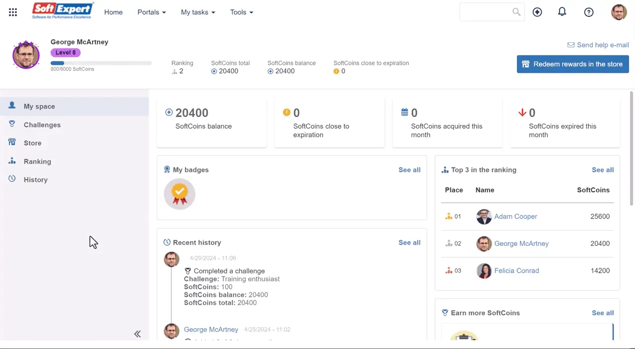 SoftExpert Gamification leverages gamification elements to boost user engagement and transform everyday tasks into exciting challenges.