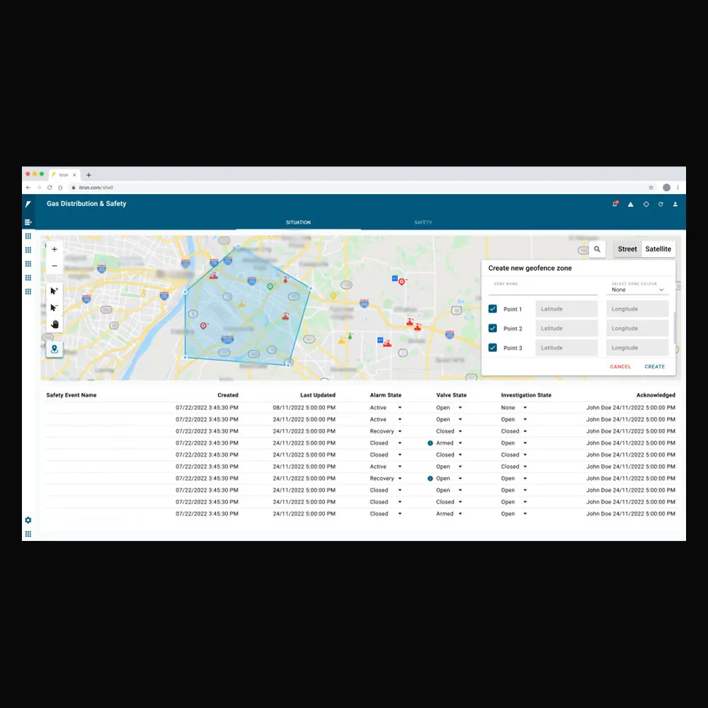 Gas Distribution Safety software enables utilities to detect, visualize, and respond to gas infrastructure risks via sensor networks and automated alarms.