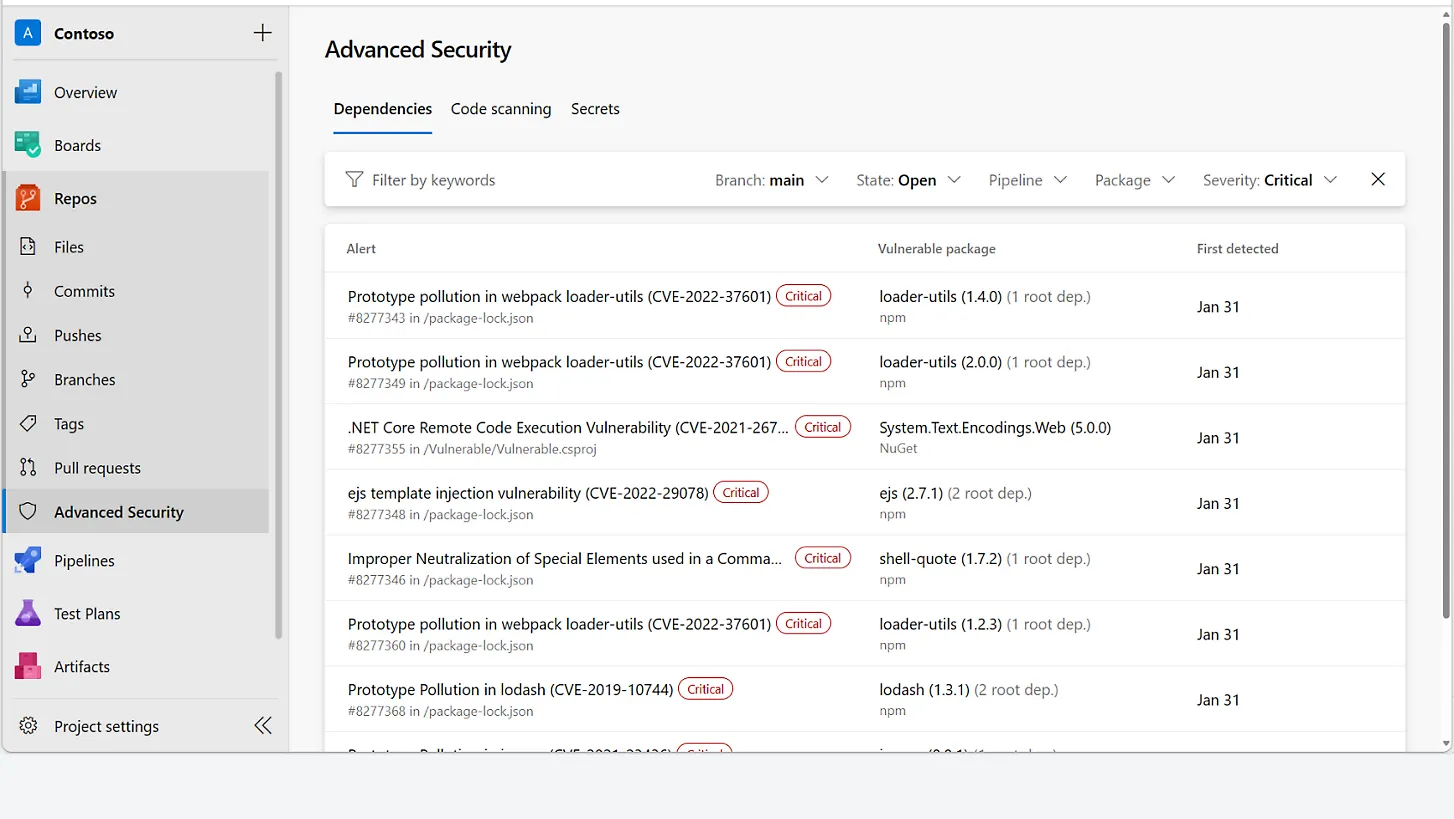 - Dependency scanning to detect vulnerable open-source components and offer straightforward remediation guidance