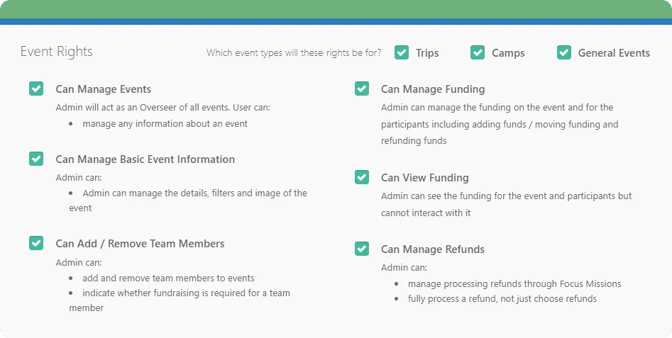 Designate permissions with roles for Go Method users. You can also create affinity groups for limited event access.