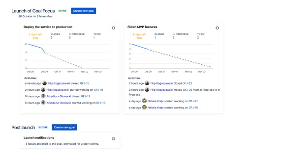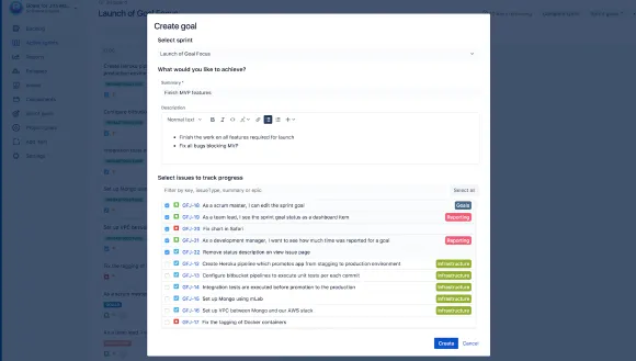 - Create goals for Jira sprints - easily associate issues related to your goals.