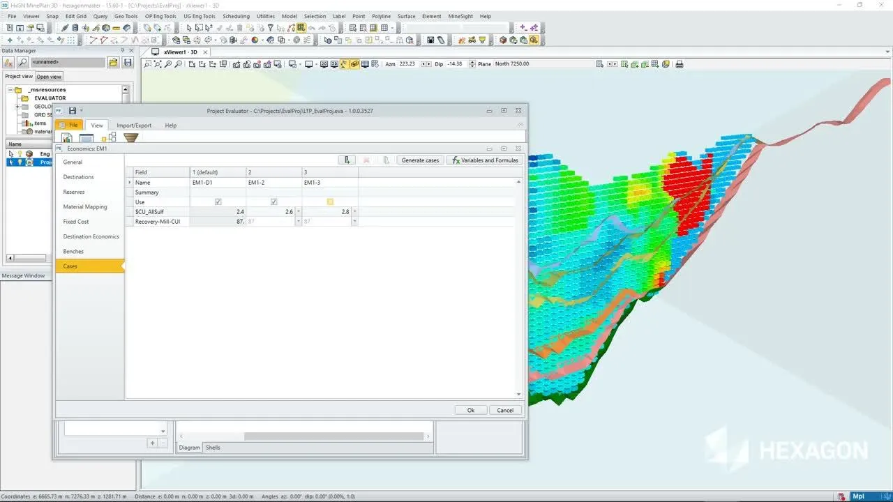 - Multiple Scenario Analysis: Equipped with robust case management tools, the software allows for the easy analysis of various potential scenarios during both pit optimization and scheduling processes, supporting informed decision-making.