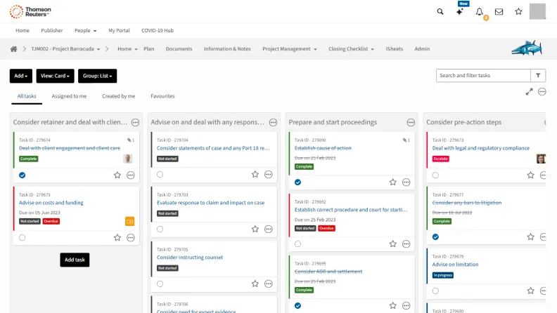 - **Reduce time spent on labor-intensive tasks with an automated workflow: **Eliminate barriers to service delivery, minimize administrative burden, and reduce overhead costs by using HighQ to easily allocate tasks and share documents and data with complete transparency. Increased visibility and seamless integrations lessen the risk of missing vital information due to manual, time-consuming, and inefficient processes.