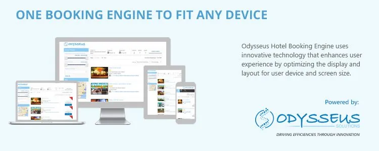 The Odysseus Hotel Booking Engine is designed to automate processes and reduce time and effort required to research and complete a hotel booking. It includes links to media files & rich content to assist with selecting the right hotel property during the shopping process. The application even uses innovative responsive technology that automatically adjusts the screen display layout based on the type of device being used to access the booking engine.