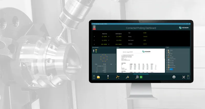 HxGN NC Gage is an innovative gauging application designed to simplify probing on machine tools. Its intuitive "Teach-In" process enables users to create gauging programs without prior programming experience, even on complex 5-axis and multi-tasking machines. By utilizing PTB-certified algorithms—identical to those used in coordinate measuring machines—NC Gage ensures high precision and reliability in manufacturing processes. The application supports a wide range of measurements, including distances, angles between features, and basic Geometric Dimensioning and Tolerancing (GD&T) functions. It is compatible with controls from manufacturers such as Makino, Mazak, Okuma, DMG Mori, Mitsubishi, and Fanuc.