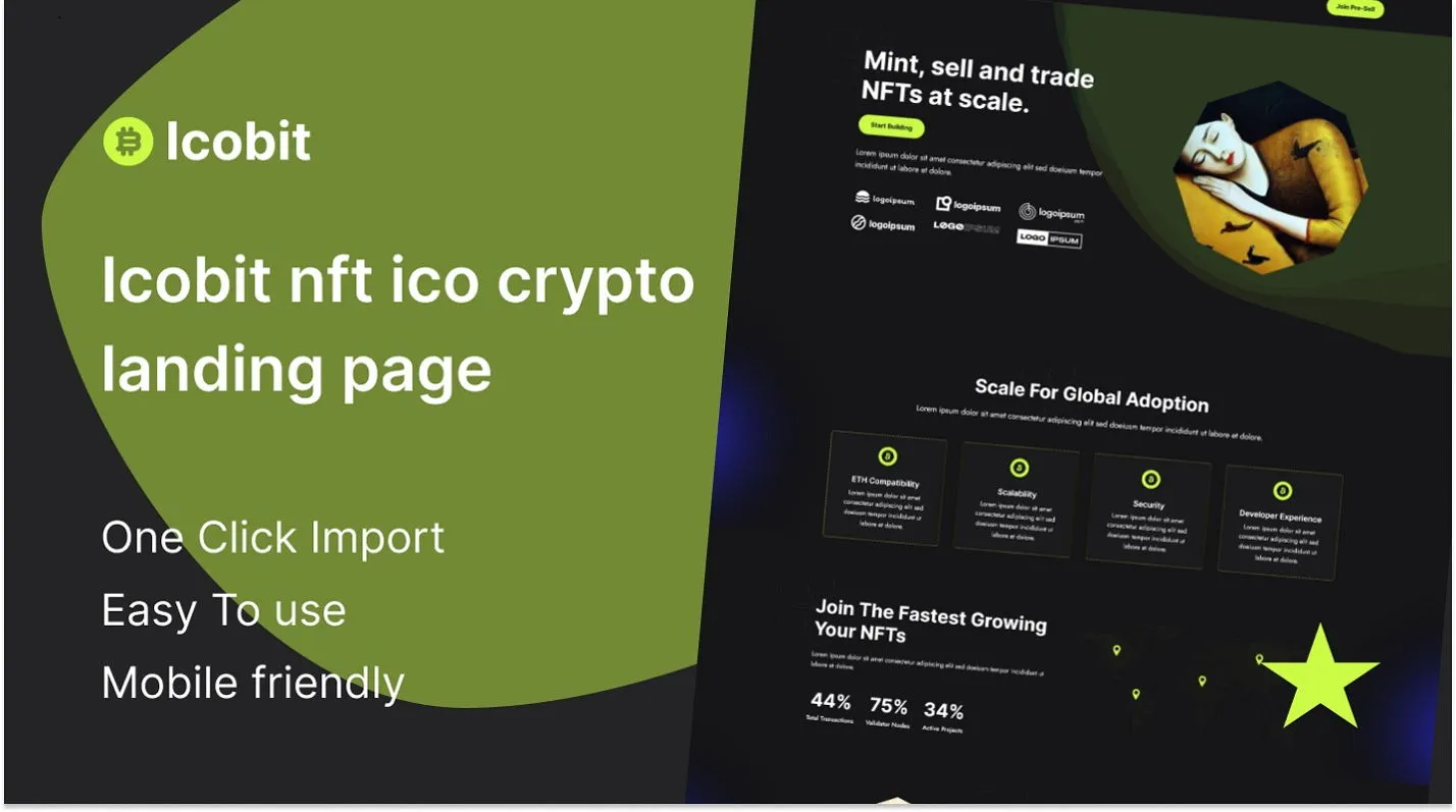 Icobit Divi Landing Page is designed which is ideal for ICO landing page & NFT landing page, Trading Crypto, BlockChain, Bitcoin. The design is very elegant and modern, and also very easy to customize ICO, NFT landing page, Trading Crypto, Coin, BlockChain Divi Layout are great looking and simple in use. All pages, screens, popups and states are in one file.