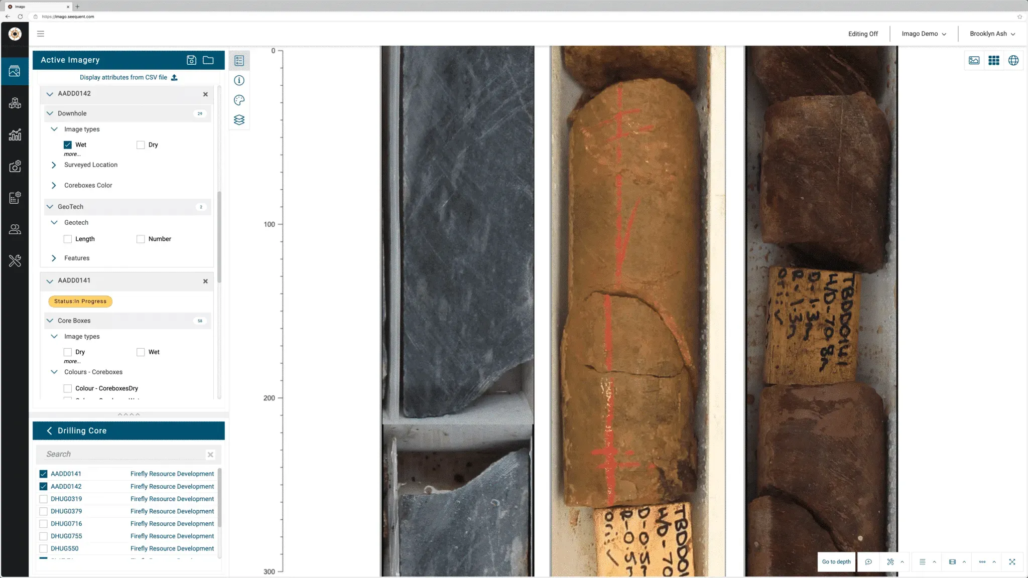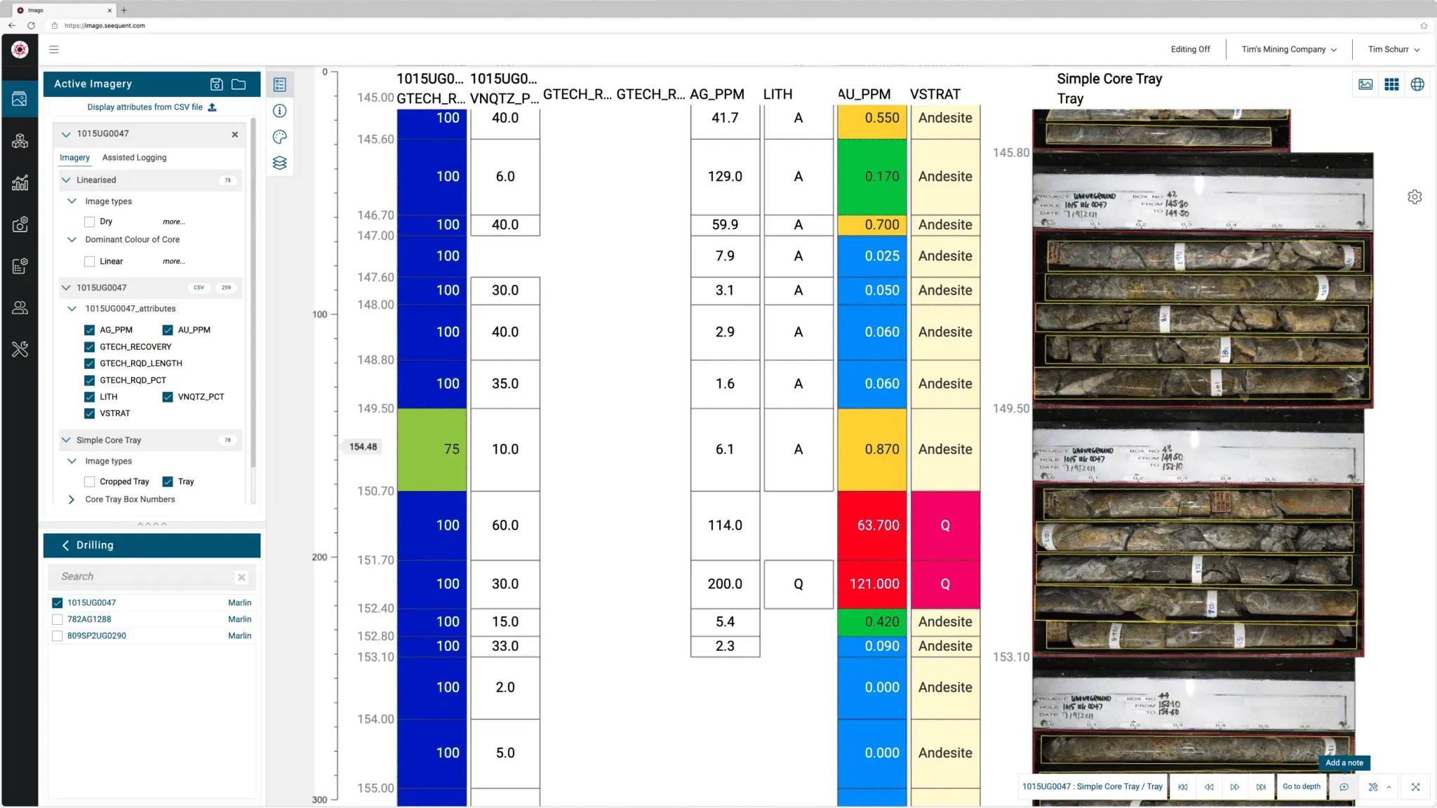 Verify data and control errors or anomalies in assay and logs using catalogued images rather than needing to manually recall core samples.