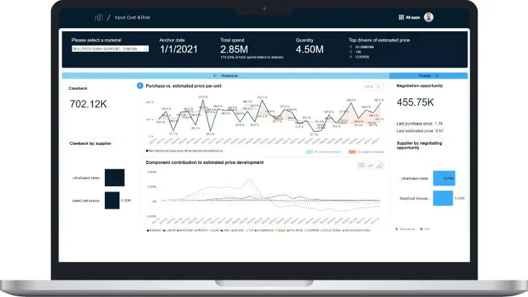 Seamlessly integrate your spend data with market indicators to enable better decision making and monitor input cost and market trends, mitigate price increases, capitalize on opportunities and manage risks. Quantify the impact of current market trends on the product portfolio and use external sources to mitigate procurement risk.