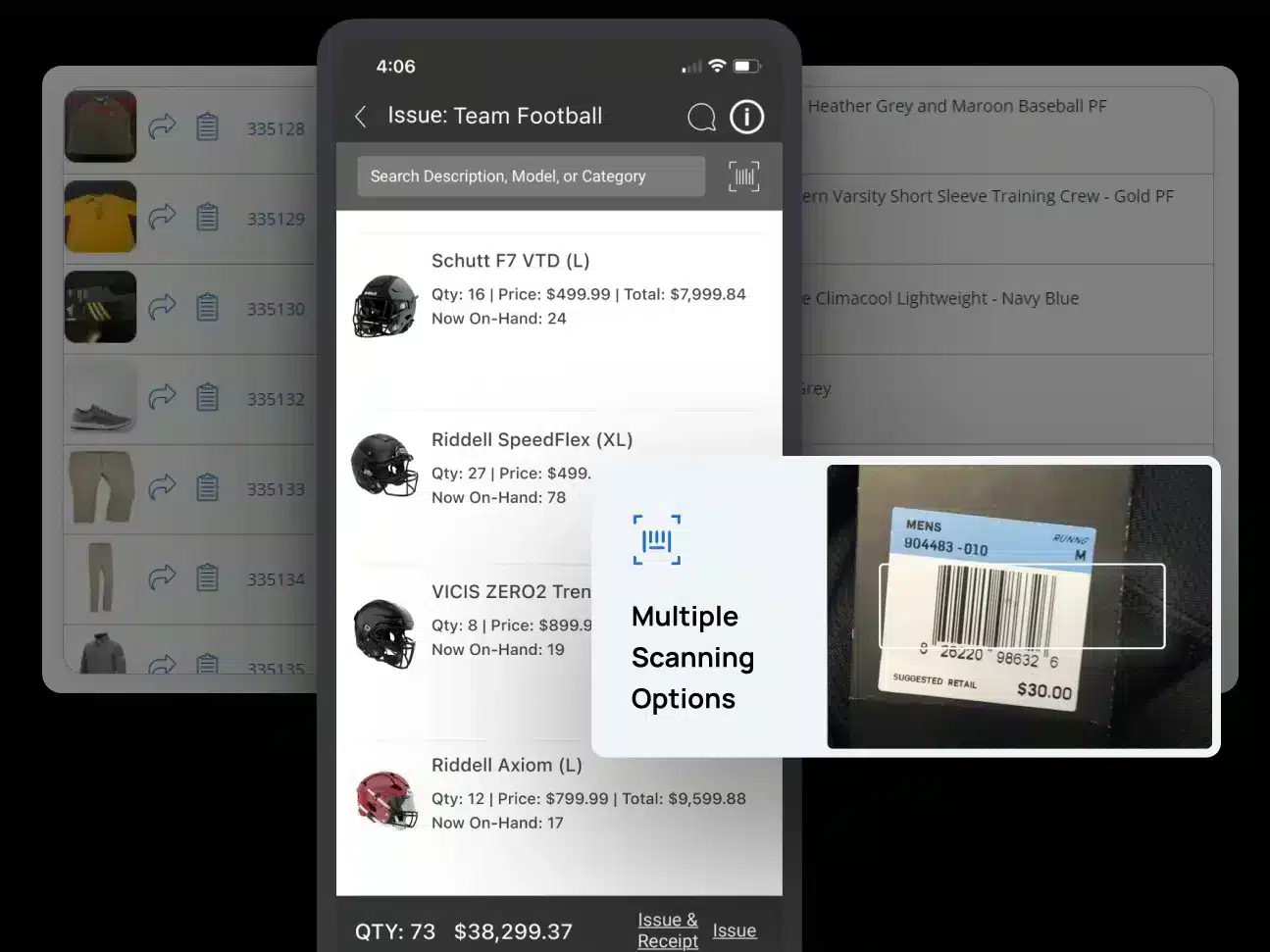 - **Improve Visibility & Mobility: **Inventory Management allows you to access the most up-to-date information from anywhere. Quickly see what’s on-hand or on-order across all sports. Our full-featured mobile app provides all the functionality you need to manage your critical day-to-day inventory tasks so you can keep up with your inventory while on the go.