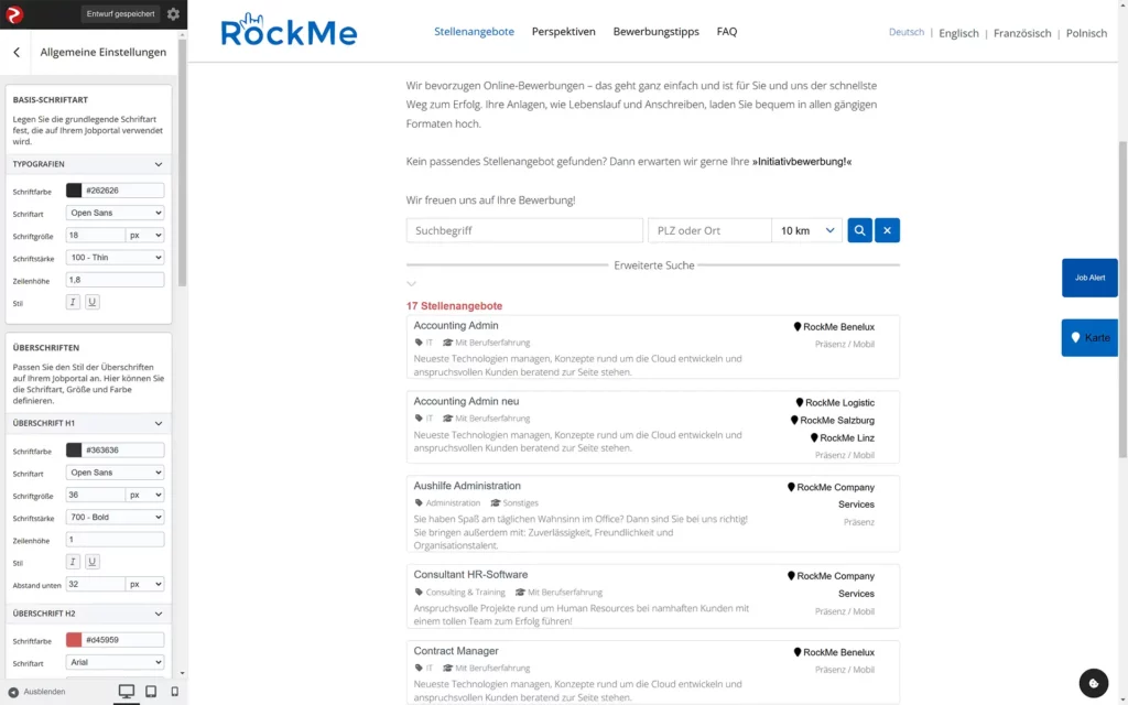With the new job portal configurator from rexx systems, you have an intuitive and easy way to design your company’s job portal independently and individually according to your wishes.