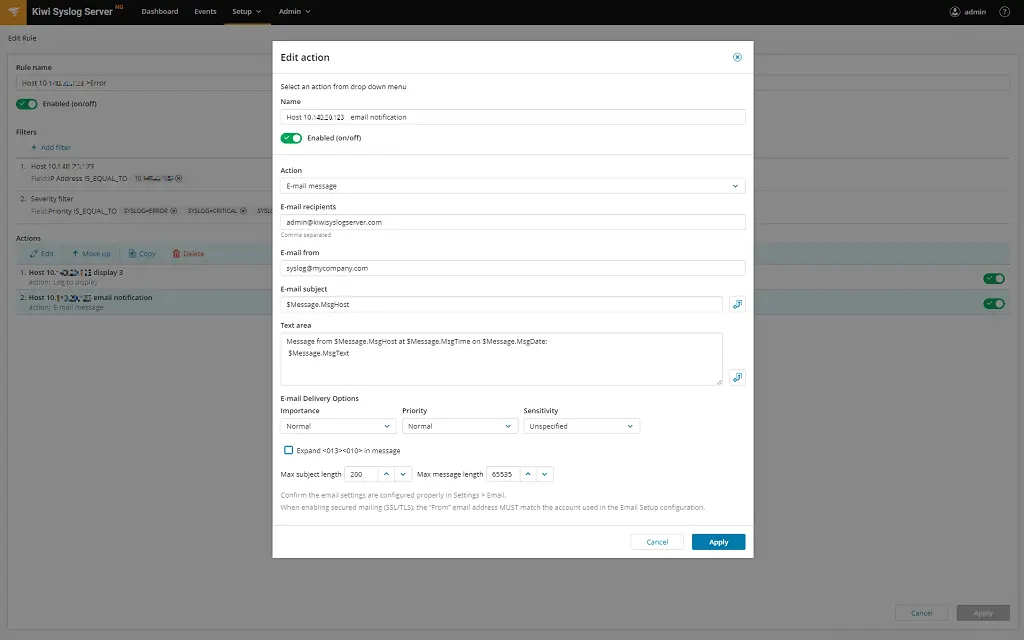 - Centrally manage syslog messages, SNMP traps, and Windows Event Logs