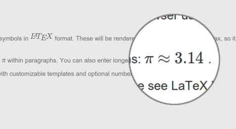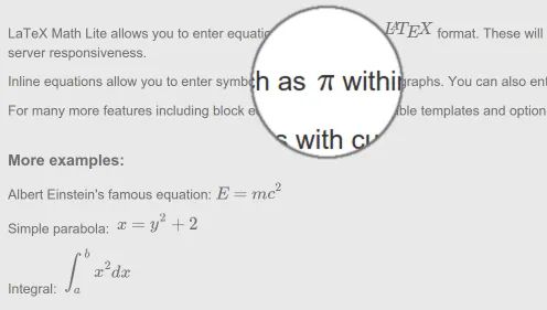 Edit using the standard macro editor including preview. Enter equations using the popular LaTeX math format.