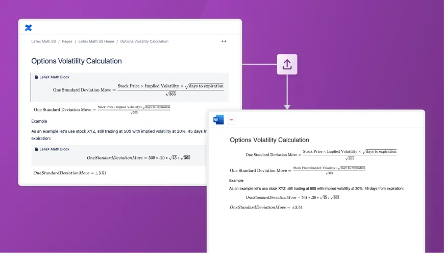 Seamlessly render latex math including equations, formulas, and expressions to Confluence pages and properly export them on PDFs or Microsoft Word.