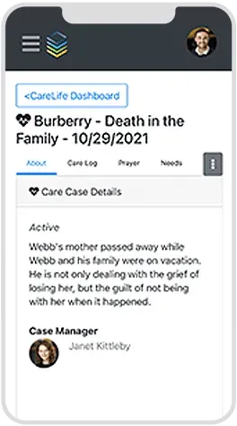 Empower your care team by giving them access to everything they need to know on-the-go. They can view Care Case details, prayer requests, and needs, as well as create new Care Cases and new Care Log entries that automatically carry over to the Platform.