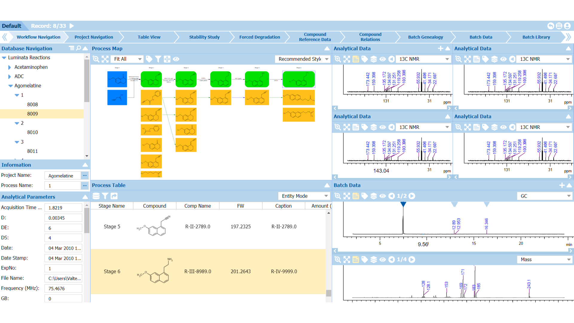 - Consolidates all process development information in one location and connects analytical data with route schema.