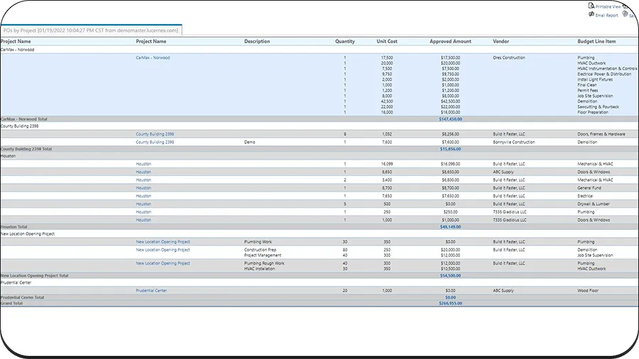 Get a big-picture view of your project and your performance. Use this information to control costs, modify KPIs and make sure that you stay on track. Use Lucernex retail construction project management reporting functionalities to track important data, simplify decision making and keep stakeholders in the loop.
