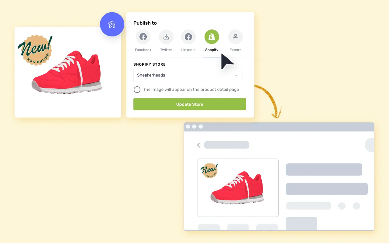 - Catalog & Channel Publishing: Connect product catalogs and publish creatives to stores, feeds, and marketing channels, with native support for Shopify and custom feeds.