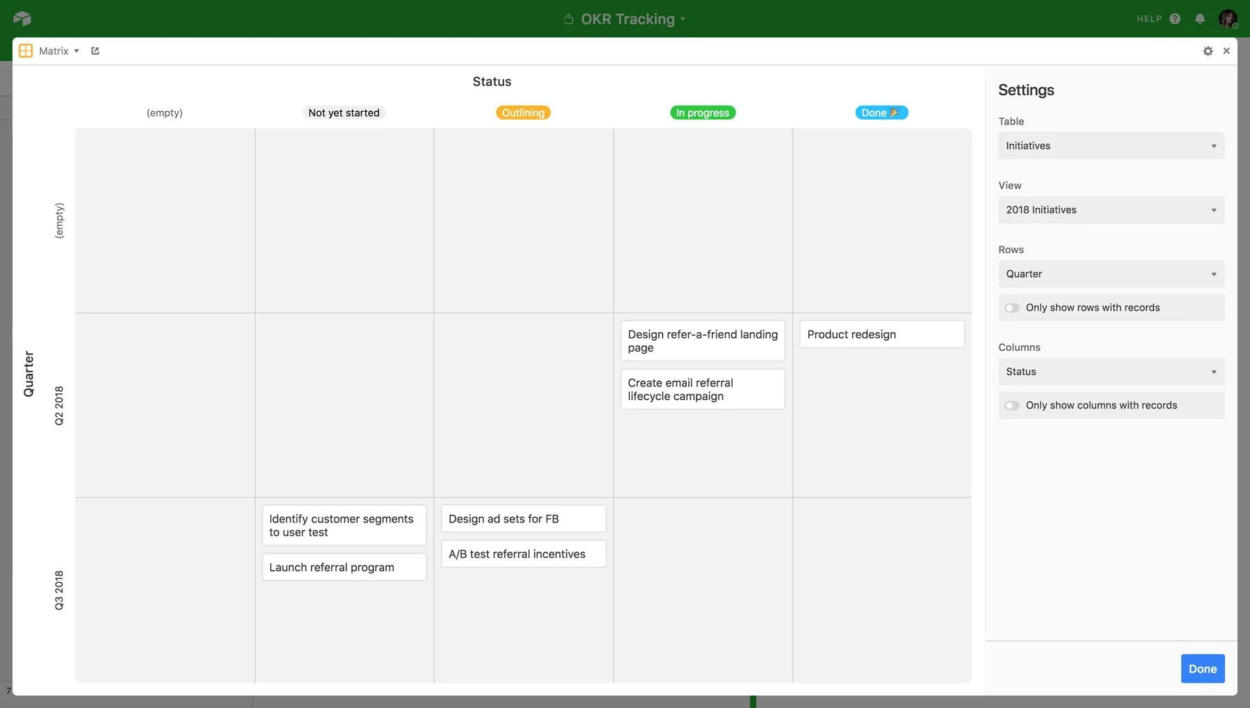 Arrange records on a 2D grid in Airtable with the Matrix app.