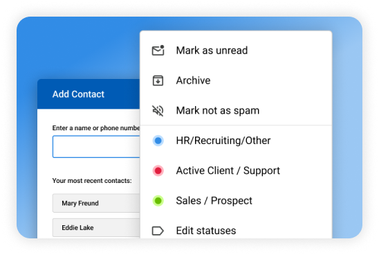 Send and receive texts from your business number. Search past messages, respond instantly, and send thousands of texts per month at no extra cost.