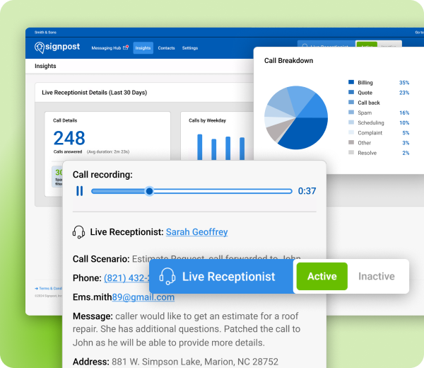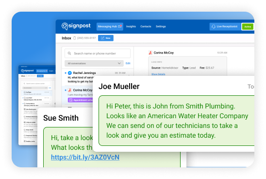 The Signpost Messaging Hub brings together all your calls, messages, and customer interactions so you never miss a lead or question.