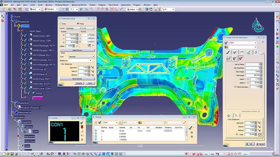 - Integrates the latest technology for efficient optical measurement functions, including cloud comparison with CAD (color mapping), element extraction, automated GD&T, and intuitive treatment of flush and gap.